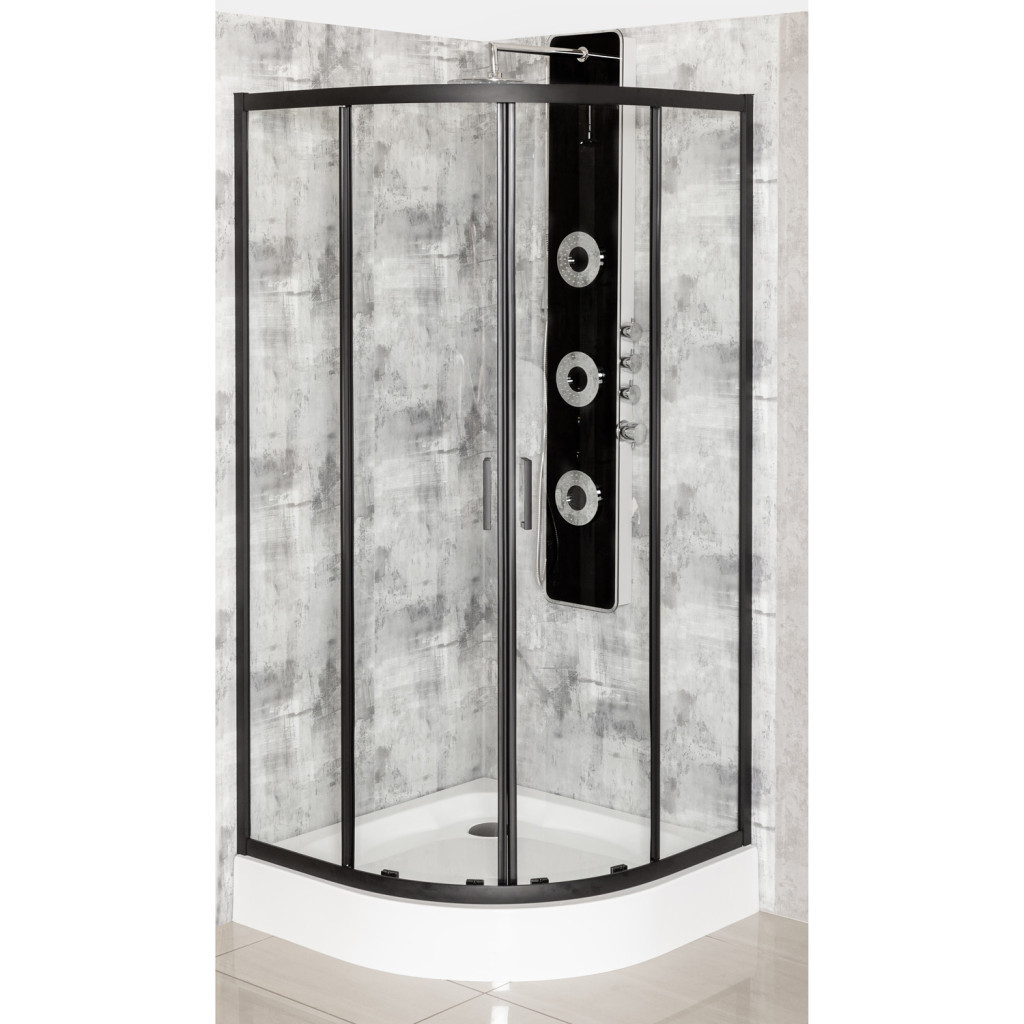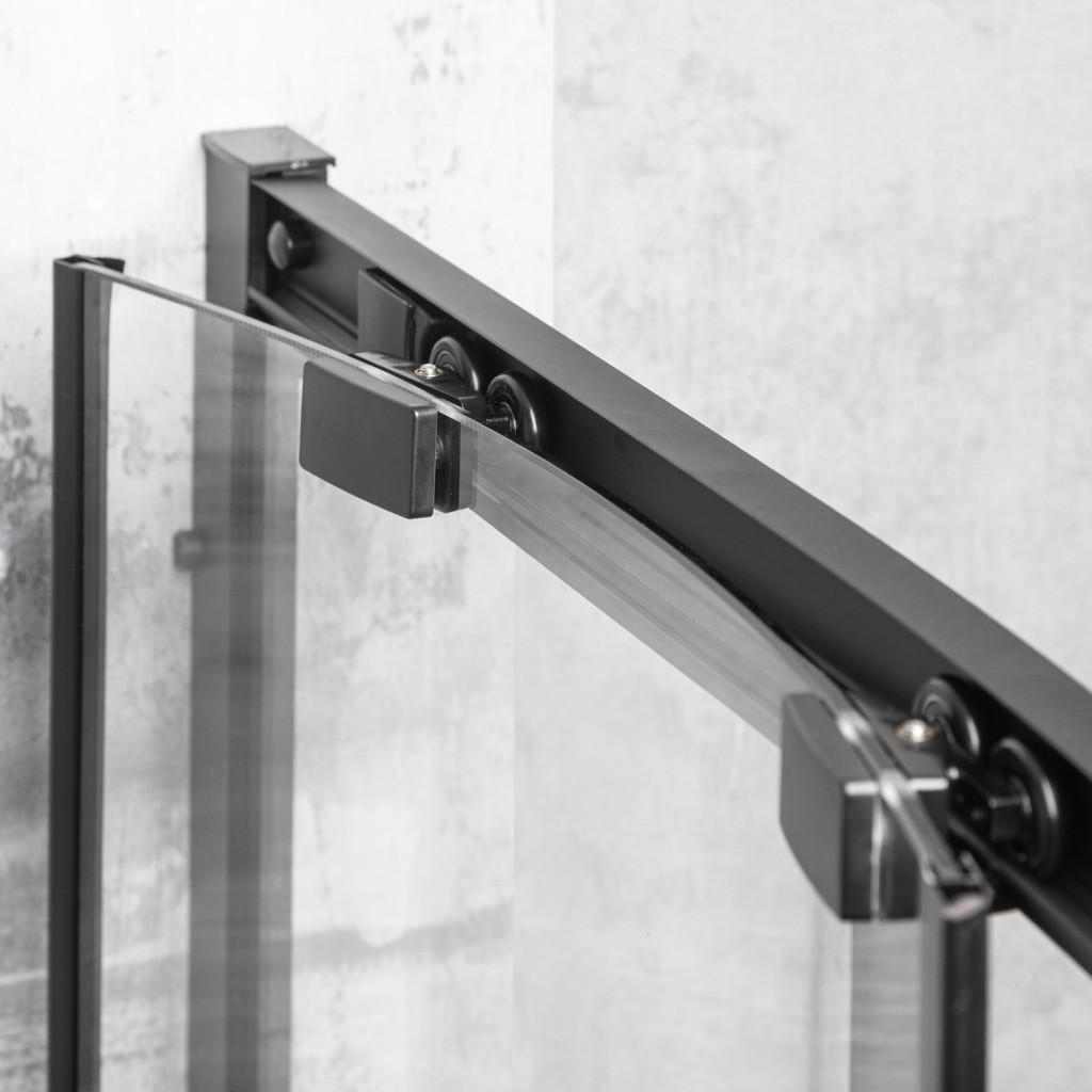 A fekete bevonatú, masszív alumínium profilok nedvességállóak és tökéletesen illeszkednek a többi fürdőszobai berendezéshez. A szett tartalmaz egy 16 cm magas, fehér akril zuhanytálcát , amely kényelmes fürdést és egyszerű tisztítást biztosít.